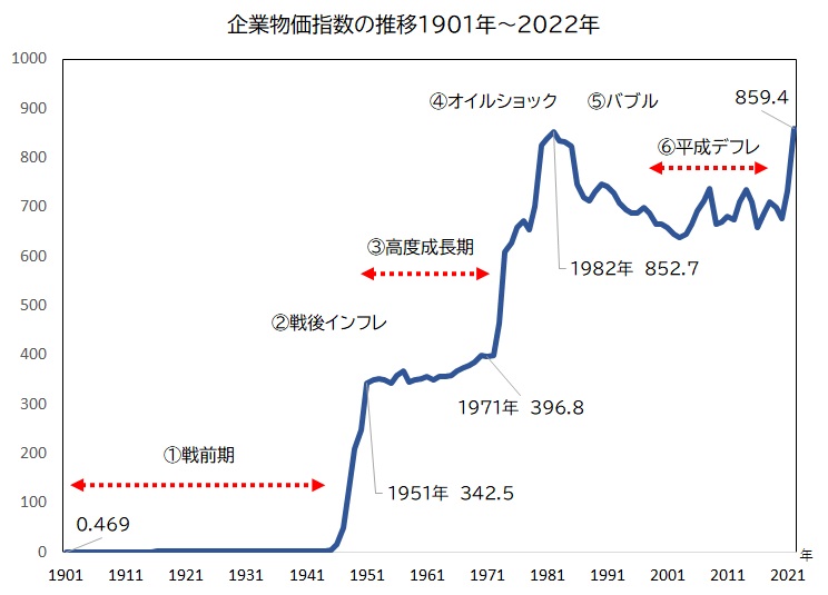 📈 企業物価指数の推移(1901〜2022年)
