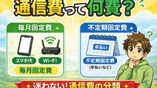 貯金・節約 通信費は何費?固定費?変動費?迷わない家計簿の分類ルール 通信費は固定費?変動費?スマホ代やWi-Fiの分類に迷う人向けにわかりやすく解説。基本は「毎月固定費」でOK。例外ケースや考え方も紹介します。 2026.04.11 貯金・節約